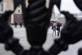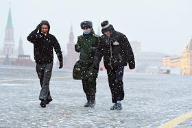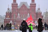 Moscow views during a snowfall. Vasilievsky Spusk Square. Genre photography.