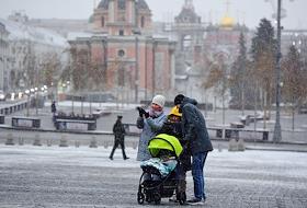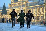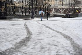 Moscow views during a snowfall. Manezhnaya Square. Genre photography.