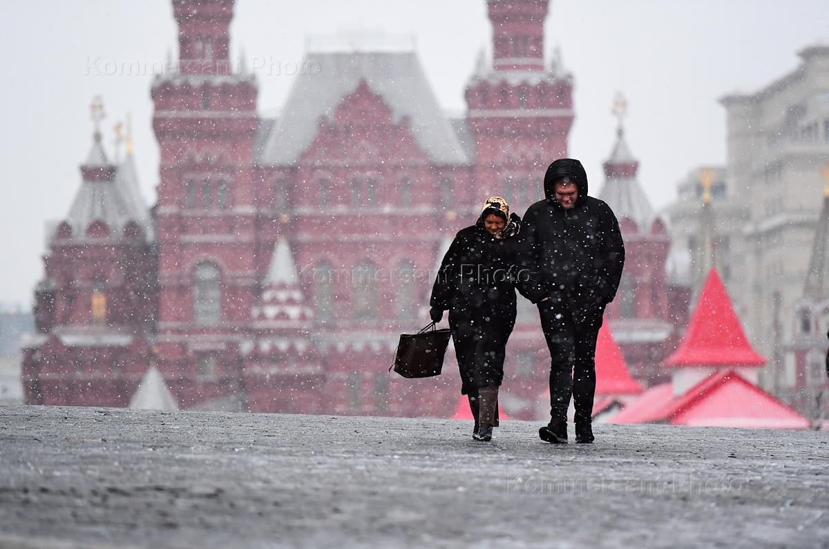 Виды Москвы во время снегопада. Красная площадь. Жанровая фотография.