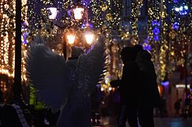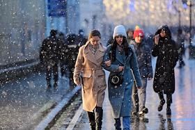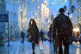Moscow views during a snowfall. Nikolskaya street. Genre photography.