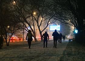 Moscow views during a snowfall. Kremlin embankment. Genre photography.