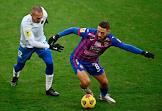 Российская Премьер-Лига (РПЛ). Тинькофф - Чемпионат России по футболу 2020/2021. 15-й тур. Матч между командами ЦСКА (Москва) - "Сочи" (Сочи) на стадионе "ВЭБ Арена". Игрок команды ЦСКА Константин Марадишвили (слева) и игрок команды "Сочи" Жоаозиньо (справа) во время матча.