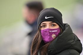 Российская Премьер-Лига (РПЛ). Тинькофф - Чемпионат России по футболу 2020/2021. 15-й тур. Матч между командами ФК ЦСКА (Москва) - "Сочи" (Сочи) на стадионе "ВЭБ Арена". Девушка-болельщица команды ЦСКА во время матча.
