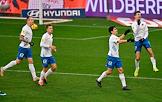 Российская Премьер-Лига (РПЛ). Тинькофф - Чемпионат России по футболу 2020/2021. 15-й тур. Матч между командами ЦСКА (Москва) - "Сочи" (Сочи) на стадионе "ВЭБ Арена". Игроки команды "Сочи" во время матча.