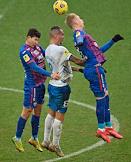 Российская Премьер-Лига (РПЛ). Тинькофф - Чемпионат России по футболу 2020/2021. 15-й тур. Матч между командами ЦСКА (Москва) - "Сочи" (Сочи) на стадионе "ВЭБ Арена". Слева направо: игрок команды ЦСКА Ильзат Ахметов, игрок команды "Сочи" Антон Заболотный и игрок команды ЦСКА Хёрдур Магнуссон во время матча.