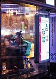 Виды Москвы. Жанровая фотография. Городская жизнь в условиях распространения коронавирусной инфекции COVID-19. Пассажиры на остановке общественного транспорта.