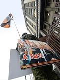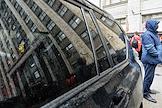 Встреча депутатов фракции КПРФ Государственной думы (ГД) России с избирателями у здания ГД России. Сотрудник полиции во время встречи.