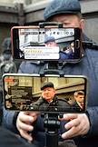 Встреча депутатов фракции КПРФ Государственной думы (ГД) России с избирателями у здания ГД России. Жанровая фотография.