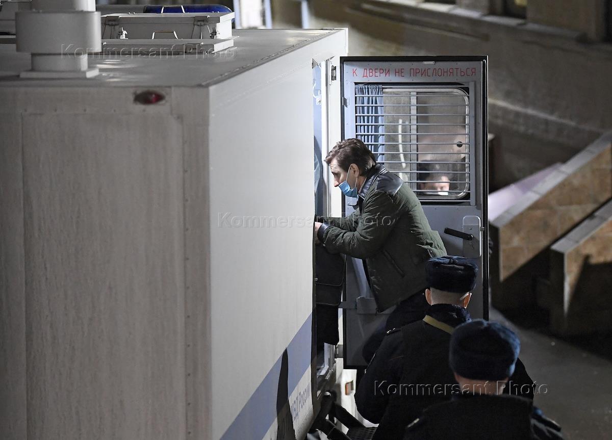 Рассмотрение ходатайства следователя о продлении срока содержания под стражей в отношении бывшего губернатора Хабаровского края Сергея Фургала, обвиняемого в организации двух убийств и в организации покушения на убийство в 2004–2005 годах, в Басманном районном суде. Сергей Фургал садится в автозак после заседания суда.