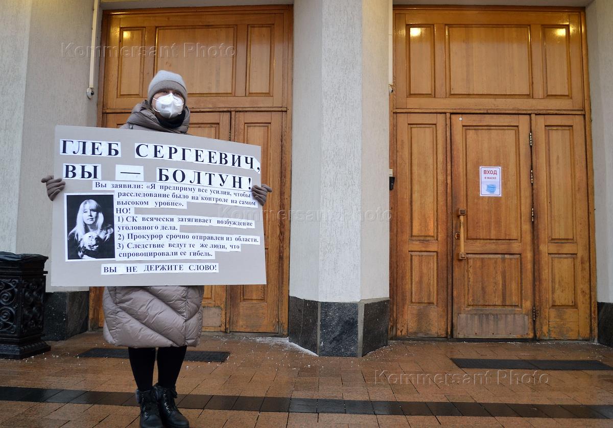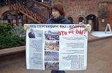 Одиночные пикеты протеста против реконструкции парка Швейцария и против отказа расследования гибели журналистки Ирины Славиной.