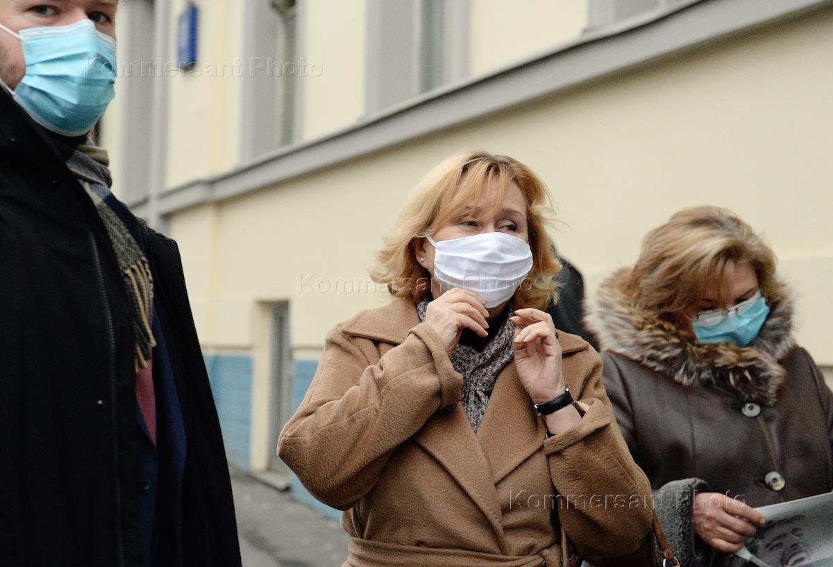 Профессор НИУ ВШЭ Ирина Алебастрова (в центре) у входа в Басманный районный суд перед рассмотрением по существу иска трех бывших преподавателей Высшей школы экономики (НИУ ВШЭ), с требованием признать увольнение незаконным, восстановить в работе, выплатить средний заработок за время прогула и компенсацию морального вреда.