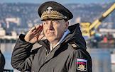 Церемония приема в корабельный состав Черноморского флота России нового патрульного корабля "Павел Державин" на Новороссийской военно-морской базе Черноморского флота России. Заместитель командующего Черноморским флотом России Сергей Липилин во время церемонии.