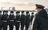 Церемония приема в корабельный состав Черноморского флота России нового патрульного корабля "Павел Державин" на Новороссийской военно-морской базе Черноморского флота России. Заместитель командующего Черноморским флотом России Сергей Липилин (в центре) во время церемонии.