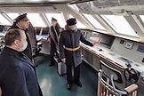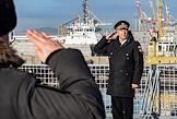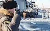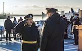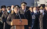Церемония приема в корабельный состав Черноморского флота России нового патрульного корабля "Павел Державин" на Новороссийской военно-морской базе Черноморского флота России. Заместитель командующего Черноморским флотом России Сергей Липилин (справа) во время церемонии.