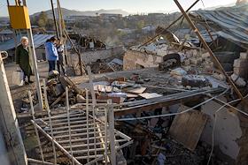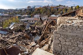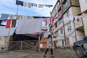 Политическая ситуация в Нагорном Карабахе. Виды Степанакерта. Разрушения от обстрелов в дни войны, местные жители. Жилой район Степанакерта.