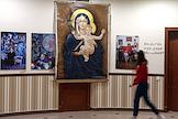 Политическая ситуация в Нагорном Карабахе. Икона Богородицы из храма в Шуши, пробитая осколками, в результате обстрела. Эвакуирована в Степанакерт, размещена в холле городского отеля.
