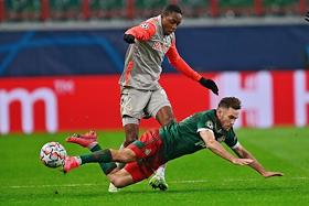 Лига чемпионов УЕФА по футболу. 5-й тур. Матч между командами "Локомотив" (Россия, Москва) - "Ред Булл Зальцбург" (Зальцбург, Австрия) на стадионе "РЖД Арена". Игрок команды "Локомотив" Мацей Рибус (слева) во время матча.