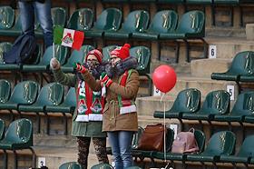 Российская Премьер-Лига (РПЛ). Тинькофф - Чемпионат России по футболу 2020/2021. 17-й тур. Матч между командами "Локомотив" (Москва) - "Рубин" (Казань) на стадионе "РЖД Арена". Болельщики команды "Локомотив" на трибуне во время матча.