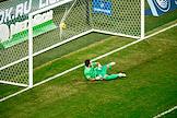 Российская Премьер-Лига (РПЛ). Тинькофф - Чемпионат России по футболу 2020/2021. 17-й тур. Матч между командами "Зенит" (Санкт-Петербург) — "Урал" (Екатеринбург) на стадионе "Газпром Арена". Вратарь команды "Урал" Илья Помазун во время матча.