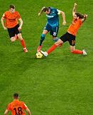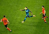 Российская Премьер-Лига (РПЛ). Тинькофф - Чемпионат России по футболу 2020/2021. 17-й тур. Матч между командами "Зенит" (Санкт-Петербург) — "Урал" (Екатеринбург) на стадионе "Газпром Арена". Игрок команды "Зенит" Малком (в центре) во время матча.