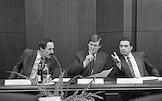 Заседание Совета Федерации (СФ) России. Председатель СФ России Владимир Шумейко (в центре) и его заместители Рамазан Абдулатипов (слева) и Валерьян Викторов (справа) во время заседания.