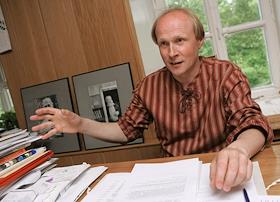 Директор музея-усадьбы Льва Толстого "Ясная Поляна, праправнук писателя Владимир Толстой в своем кабинете.