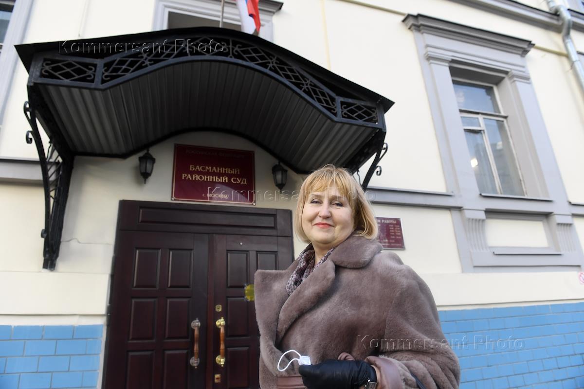 Профессор НИУ ВШЭ Ирина Алебастрова у входа в Басманный районный суд перед рассмотрением иска трех бывших преподавателей Высшей школы экономики (НИУ ВШЭ), с требованием признать увольнение незаконным, восстановить в работе, выплатить средний заработок за время прогула и компенсацию морального вреда.