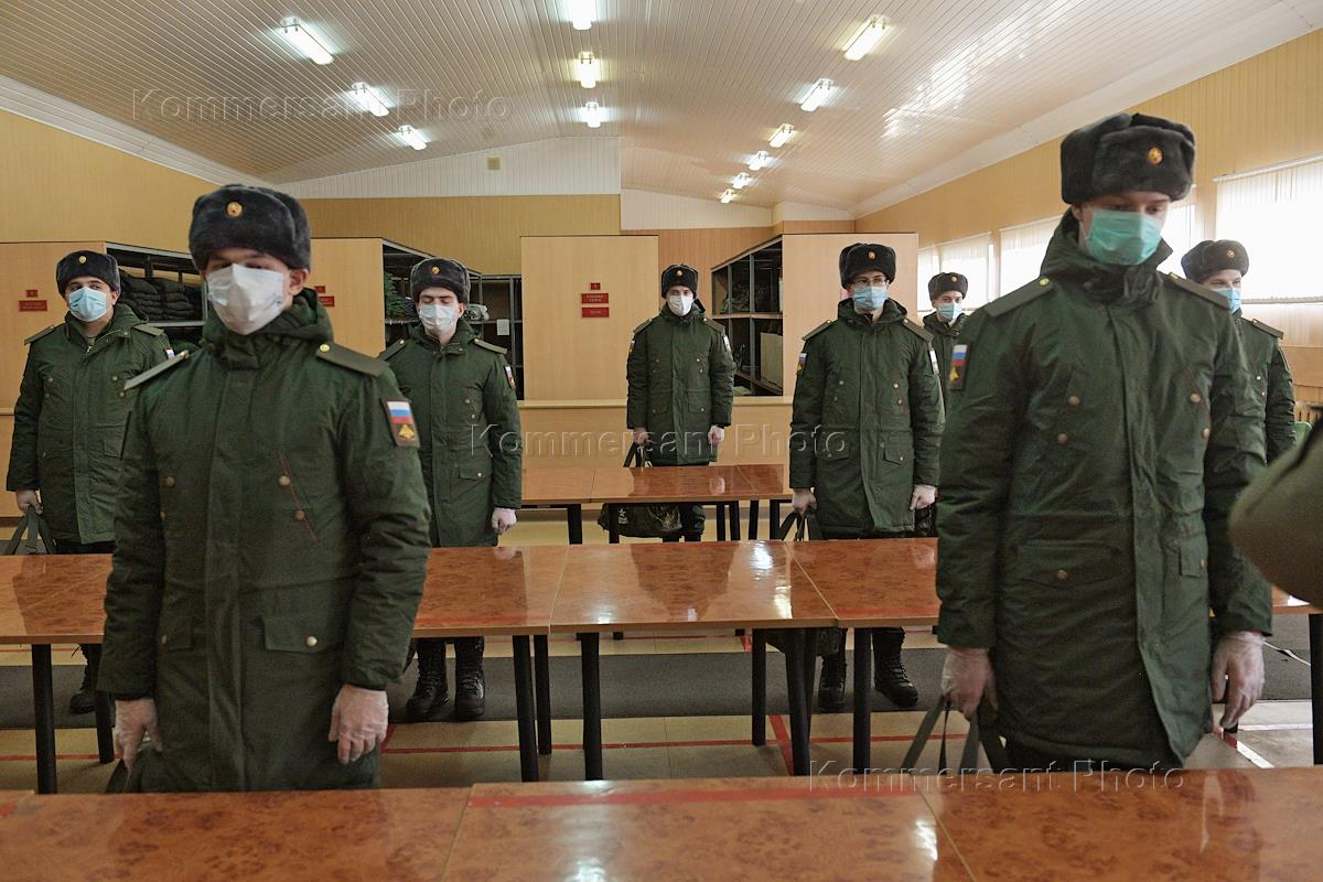 Отправка призывников в научные роты Вооруженных сил России с территории сборного пункта военного комиссариата города Москвы. Жанровая фотография. Призывники на сборном пункте.