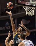 Евролига по баскетболу. Матч между командами "Химки" (Химки) - ЦСКА (Москва) в спортивном комплексе "Арена Мытищи". Игрок команды "Химки" Грег Монро (в центре) во время матча.