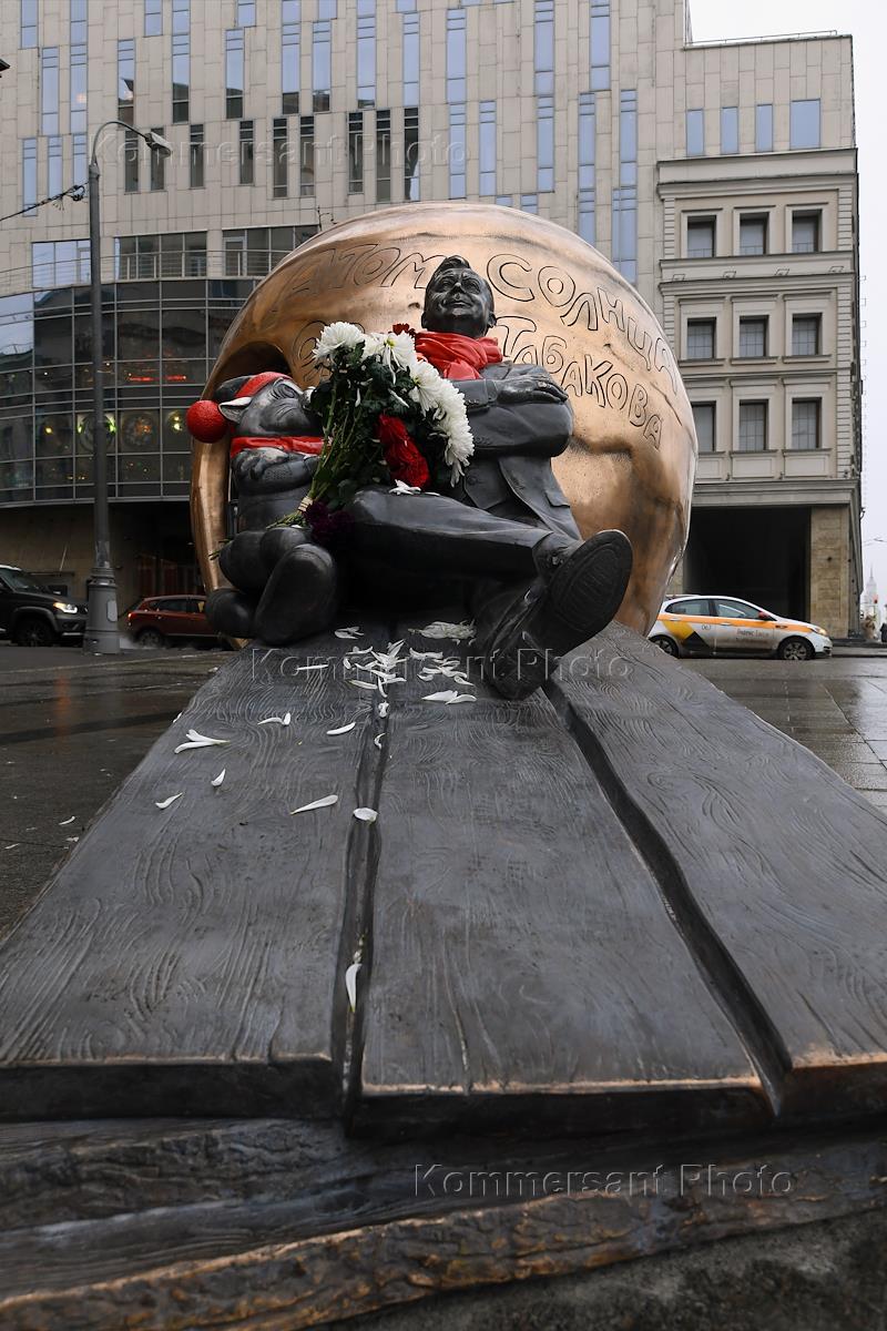 The opening ceremony of the sculptural composition "Atom of the Sun of Oleg Tabakov" by sculptor Alexander Rukavishnikov, timed to coincide with the 85th anniversary of the artist's birth, near the Moscow Theater of Oleg Tabakov on Malaya Sukharevskaya.