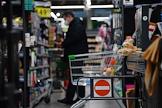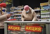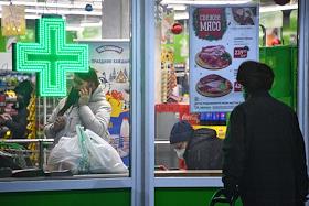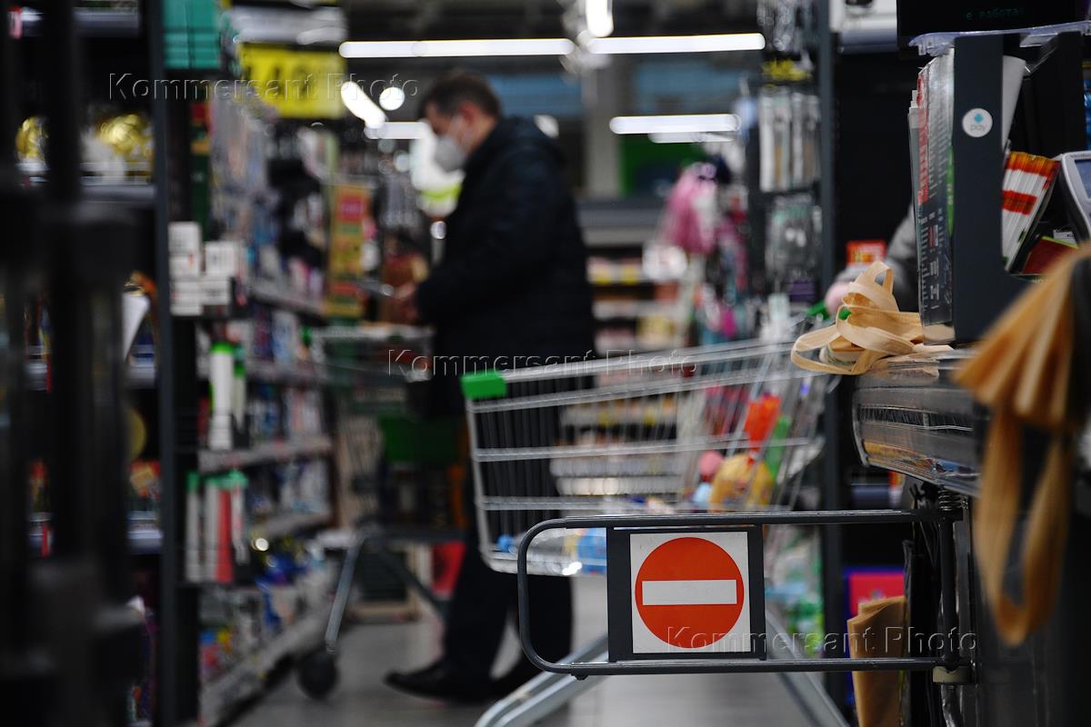 Жанровая фотография. Покупатели в медицинских маска в супермаркете.