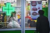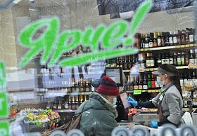 Жанровая фотография. Покупатели за окном витрины магазина "Ярче".