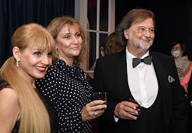 IX церемония вручения премии за достижения в области кино и телевидения "Событие года" журнала "КиноРепортер" в ресторане Yura. Справа налево: композитор Алексей Рыбников с супругой Татьяной и бизнесвумен Наталия Искакова на церемонии.