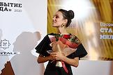 IX церемония вручения премии за достижения в области кино и телевидения "Событие года" журнала "КиноРепортер" в ресторане Yura. Дочь Андрея Кончаловского Дарья Михалкова получает награду в номинации "Фильм года" за фильм "Дорогие товарищи" режиссера Андрея Кончаловского на церемонии.