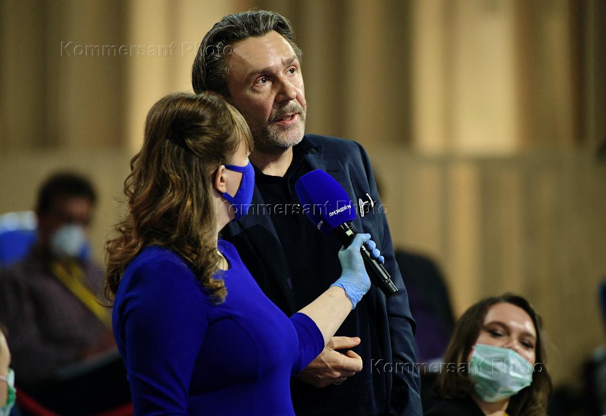 Ежегодная пресс-конференция президента России Владимира Путина в Центре международной торговли на Красной Пресне. Музыкант, член "Партии Роста" Сергей Шнуров перед началом пресс-конференции.