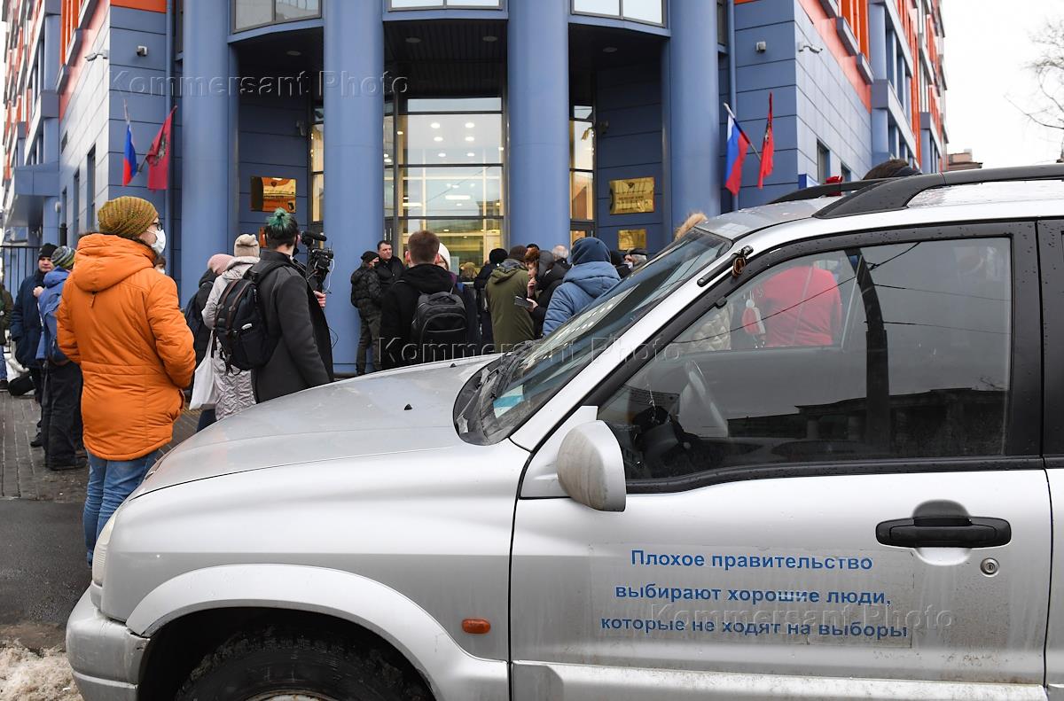 Рассмотрение уголовного дела в отношении муниципального депутата Юлии Галяминой, обвиняемой в неоднократном нарушении порядка проведения митингов, в Тверском районном суде. Ситуация у здания суда.