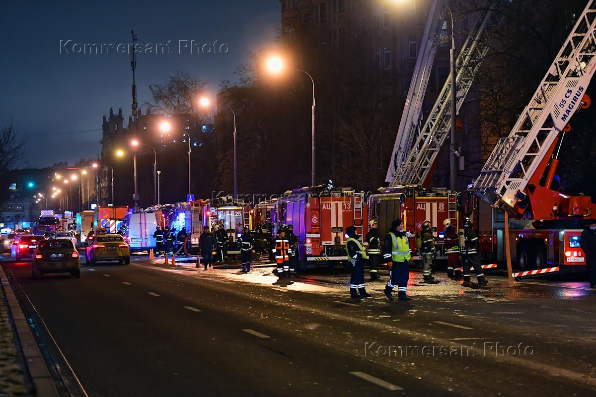 Пожар в здании "Мосгоргеотреста" на Ленинградском проспекте.