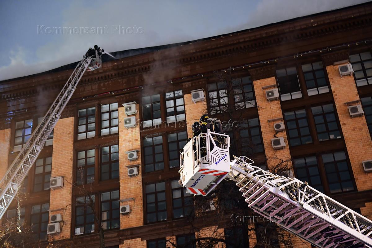Пожар в здании "Мосгоргеотреста" на Ленинградском проспекте.