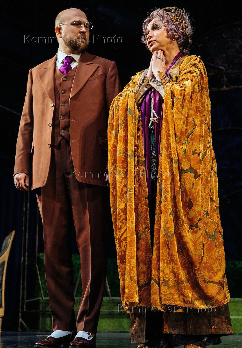 Репетиция спектакля Санкт-Петербургского Государственного академического театра комедии имени Н.П. Акимова "Иллюзия любви" по пьесе Сомерсета Моэма "Круг" в постановке режиссера Татьяны Казаковой. Актеры Ирина Мазуркевич (слева) и Константин Воробьев (справа) во время репетиции.