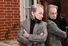 Специальный показ спектакля "7 дней в Совриске" на сцене нового пространства Театра Наций. Директор Мультимедиа Арт Музея Ольга Свиблова (справа) перед началом показа.
