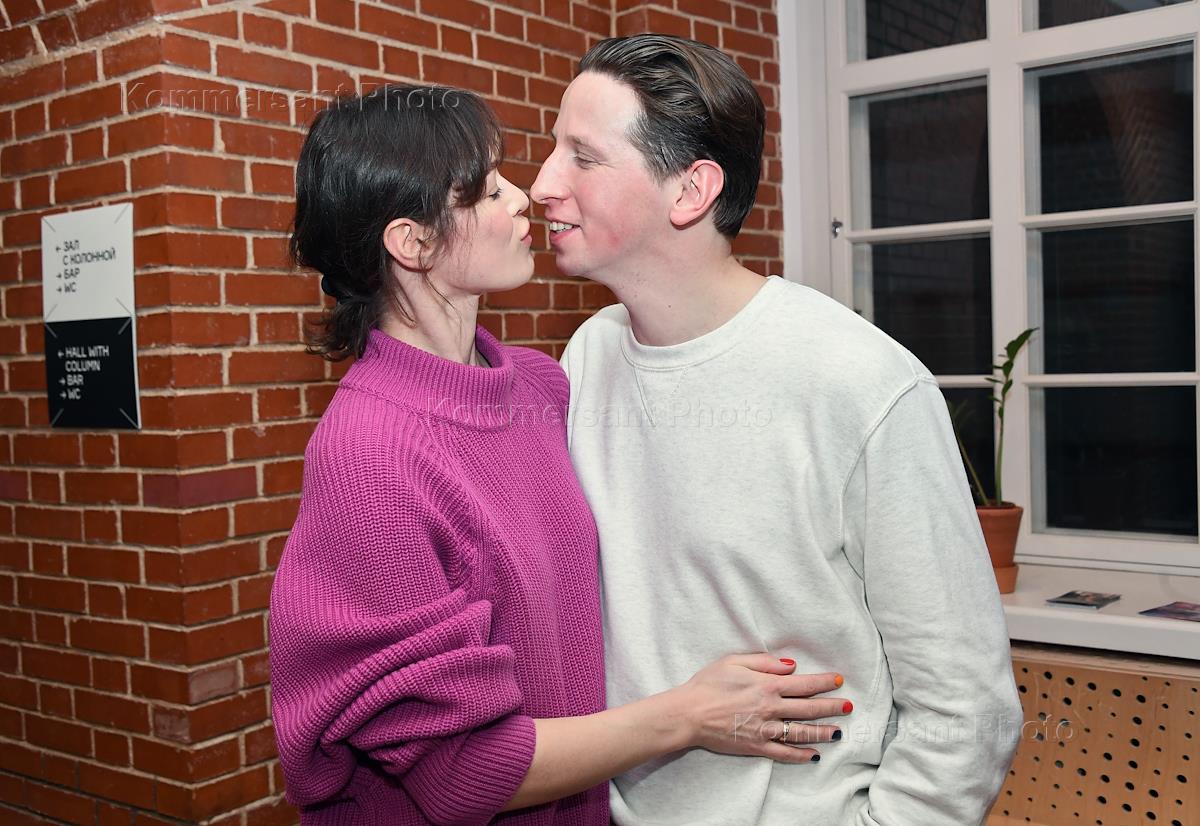 Специальный показ спектакля "7 дней в Совриске" на сцене нового пространства Театра Наций. Актер Дмитрий Лысенков (справа) и его супруга, актриса Мария Зимина перед началом показа.
