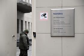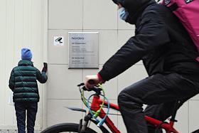 Жанровая фотография. Офис "Нордеа Банк" на 3-ей улице Ямского поля. Вывеска на воротах въезда на территорию банка.