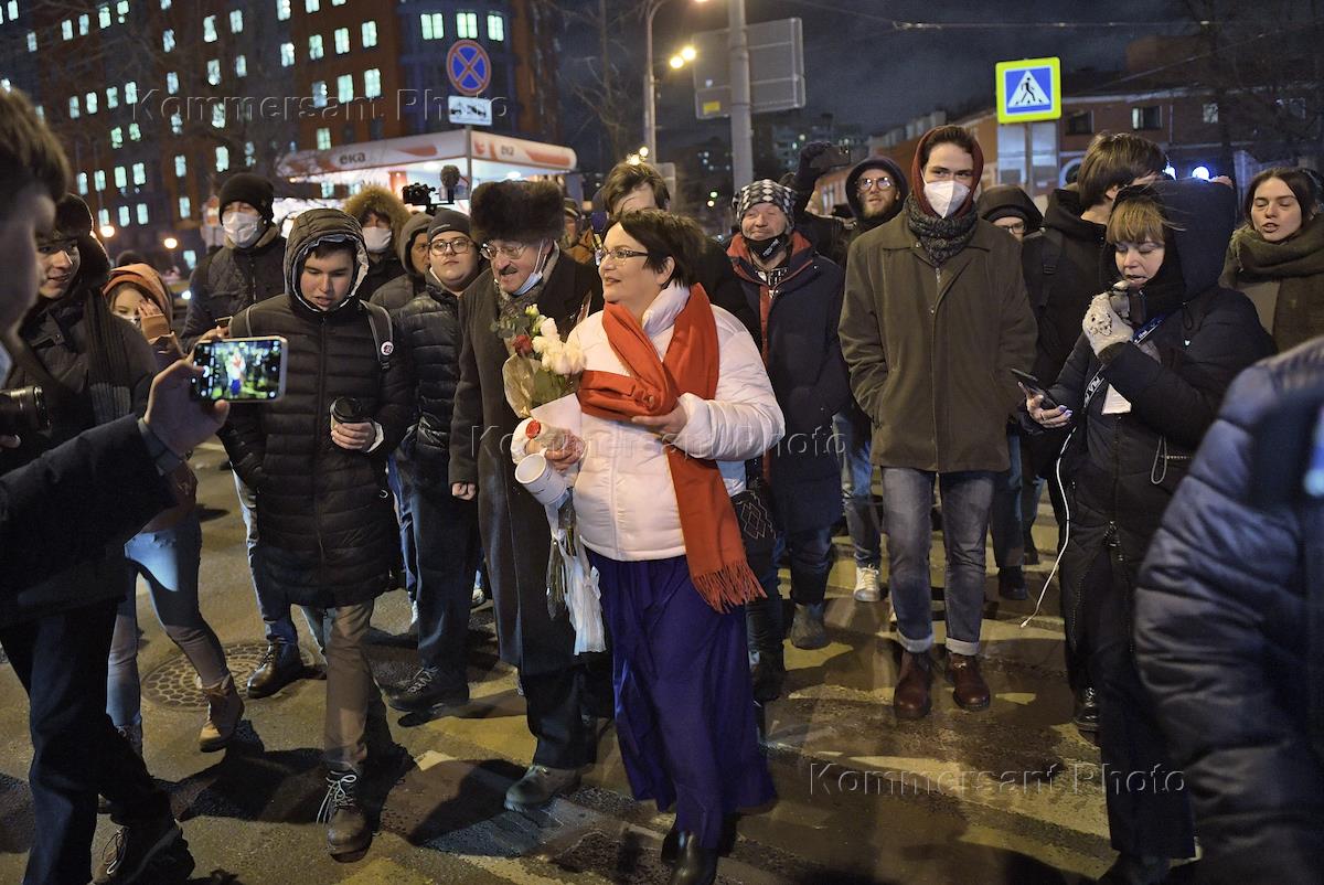 Оглашение приговора муниципальному депутату Тимирязевского района Юлии Галяминой, обвиняемой в нарушении правил организации митингов, в Тверском районном суде. Сторонники депутата у здания суда.