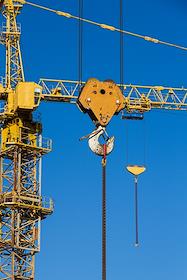 Жанровая фотография. Строительная техника. Работа подъемных кранов на строительстве жилого комплекса.