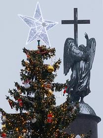 Виды Санкт-Петербурга. Жанровая фотография. Новогодняя ёлка и ангел Александрийской колонны.