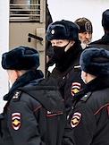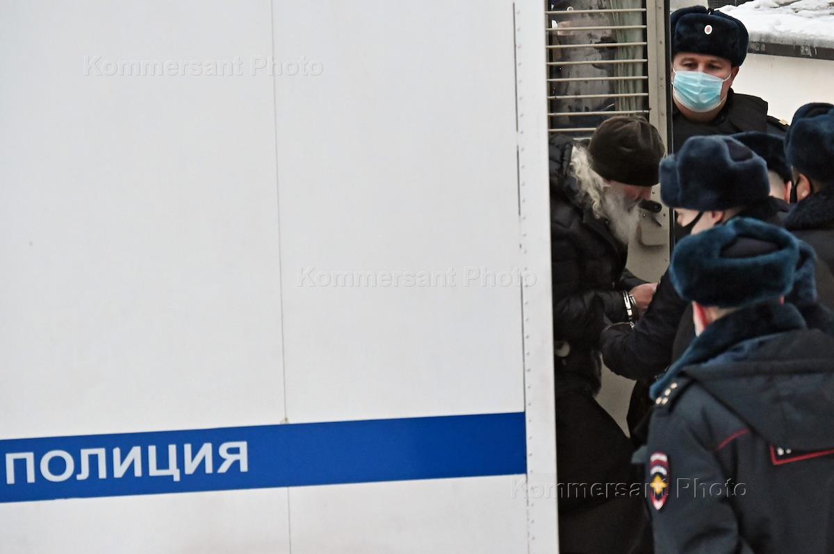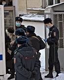 Ситуация у здания Басманного районного суда, где избирается мера пресечения бывшему схиигумену Среднеуральского женского монастыря Сергию (Николай Романов), обвиняемому в нарушении права на свободу совести и вероисповеданий, самоуправстве и склонении к самоубийству. Сотрудники полиции во время пикета сторонников бывшего схиигумена Сергия у здания суда.