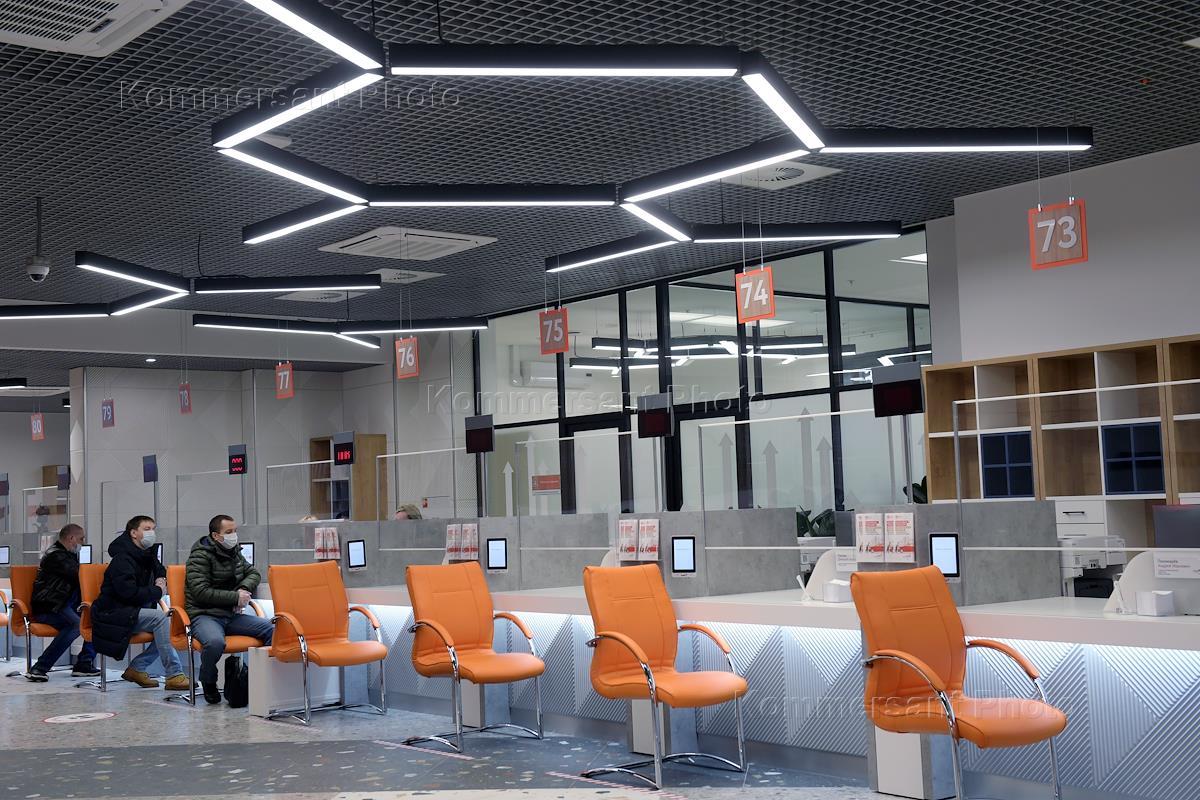 Работа многофункционального центра государственных услуг (МФЦ) "Мои документы" в торговом центре (ТЦ) "Щелковский". Сотрудники и посетители в МФЦ.
