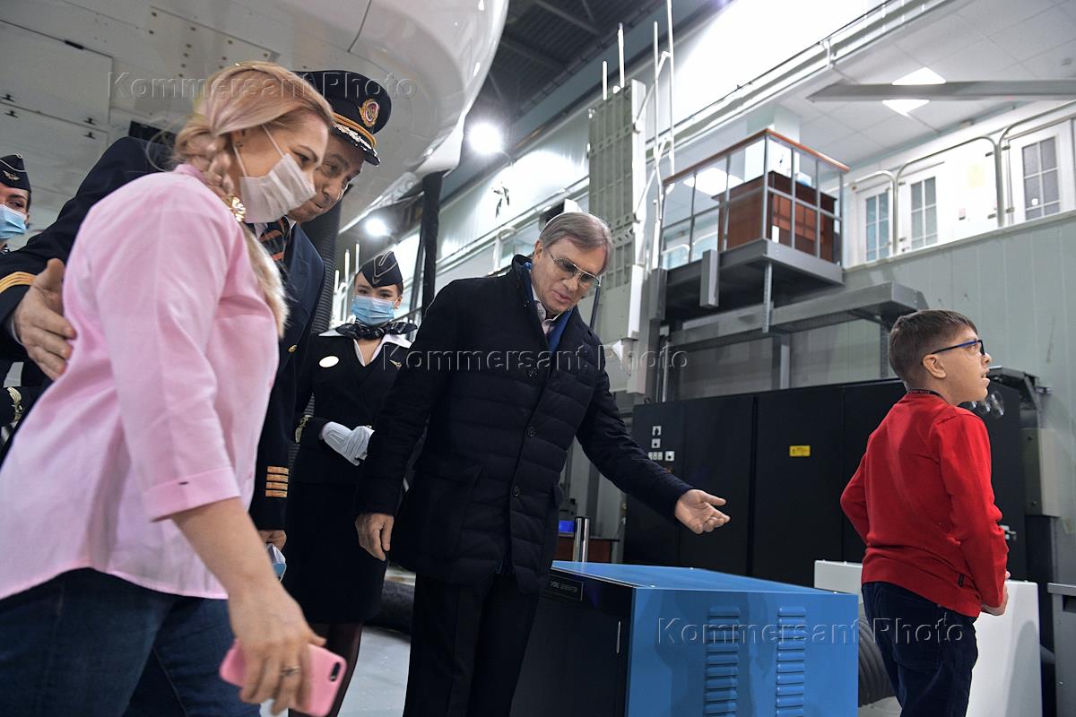 Министр транспорта России Виталий Савельев во время посещения Тренажерного комплекса Центра подготовки авиационного персонала (ЦПАП) ПАО "Аэрофлот"в рамках всероссийской благотворительной акции "Елка желаний" для детей, по разным причинам оказавшихся в непростой жизненной ситуации. Виталий Савельев помог осуществить мечту мальчика Савелия Горелова из города Одинцово Московской области "полетать на авиатренажере".