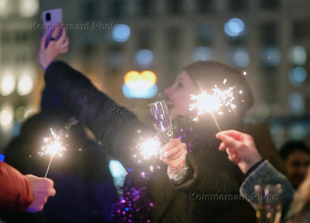 Жанровая фотография. Празднование нового года на улицах города.