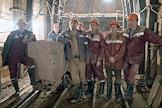 Московский метрополитен. Жанровая фотография. Станционный комплекс "Ржевский". Проходчики в наклонном стволе.